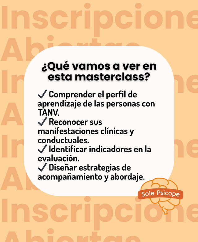En esta masterclass vamos a explorar el TANV desde una mirada actualizada, entendiendo qué ocurre a nivel cognitivo, conductual y emocional cuando la persona presenta un funcionamiento no verbal diferente.